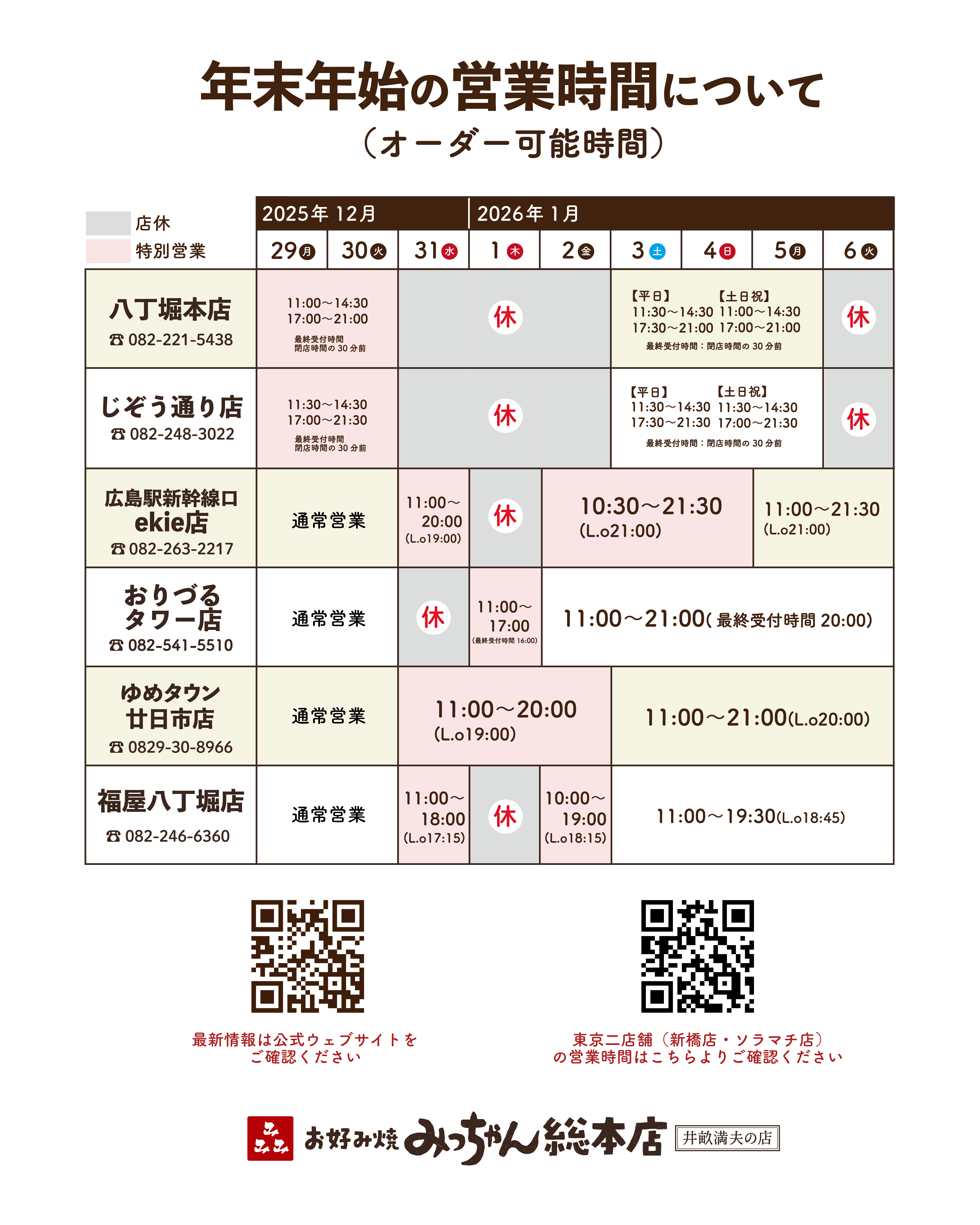今後ともお好み焼みっちゃん総本店をどうぞよろしくお願いいたします。